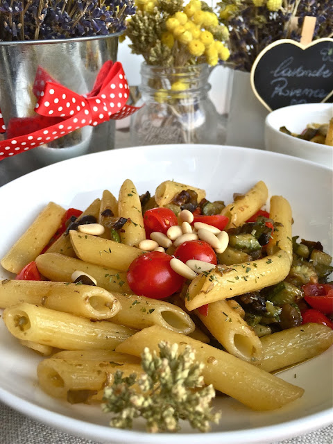 Eccomi alle prese con uno dei miei cavalli di battaglia! Una delle prime ricette che ho caricato sul blog quando non era ancora pubblico! Un piatto a cui sono molto affezionata e che in casa mia è un classico. L’anno scorso in Provenza l’ho cucinata per una famiglia di nuovi amici che abbiamo conosciuto in vacanza e mi ricorda una serata piacevolissima trascorsa con loro. Ma sono tanti i ricordi legati a questa pasta, facilissima da fare e gustosa come poche. Un piatto mediterraneo, sano e nutriente. Buonissimo sia caldo che freddo. Io l’adoro e spero che sarà la stessa cosa per voi e che, come nel mio caso, il suo profumo possa evocare bellissimi ricordi! Allora bando alle ciance e prepariamo insieme gli ingredienti!