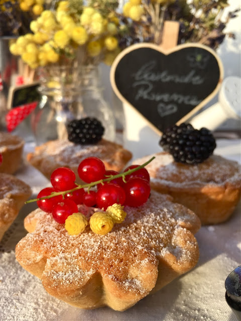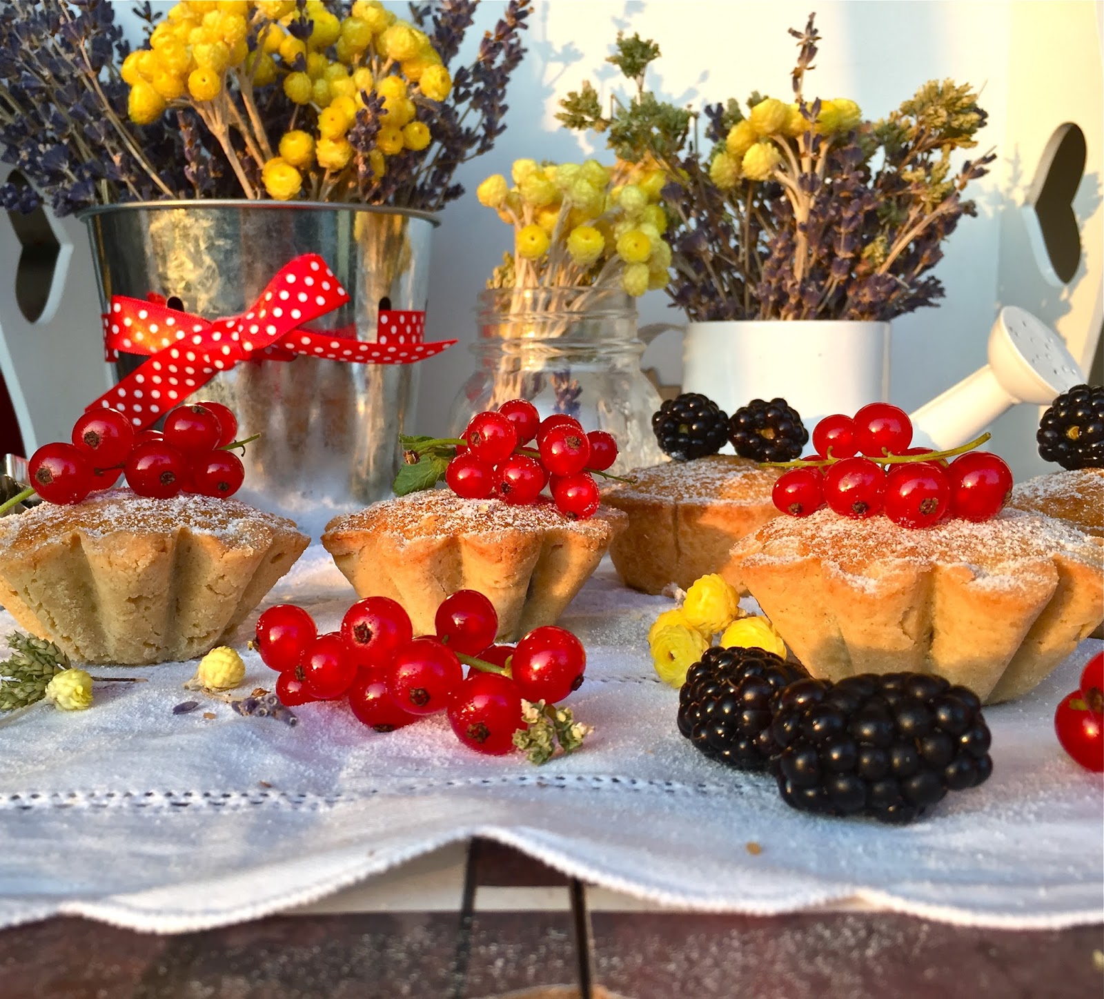 Tartellette con crema frangipane, marmellata e frutti di bosco