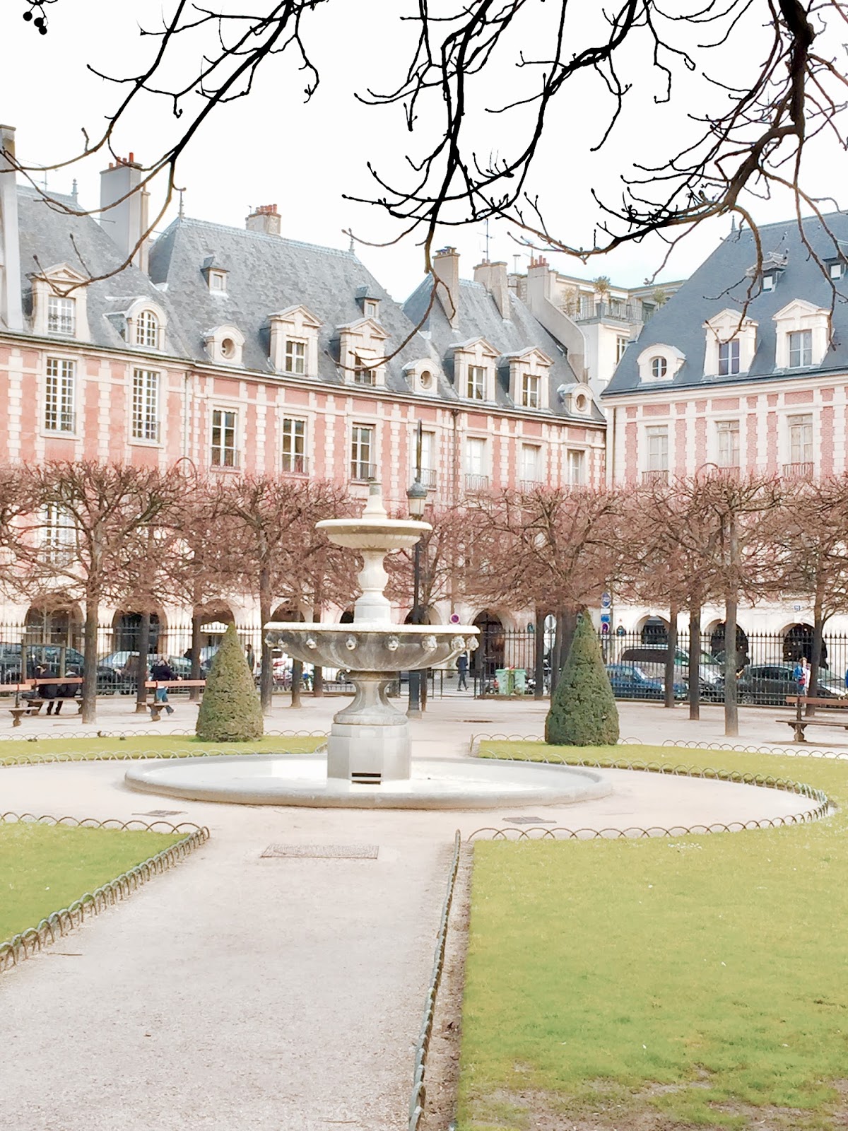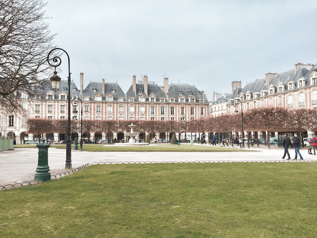 Passeggiamo con gli occhi rivolti alle vetrine fino ad arrivare alla piazza più antica ed affascinante di Parigi, meravigliosa in primavera per improvvisare un pique-nique sul prato, inspirante in autunno con le foglie ingiallite che ricoprono il terriccio, romantica in inverno quando le coppie si scaldano coccolandosi salle panchine. Place des Vosges é favolosa in ogni stagione … capace di affasciare al primo sguardo e stringerti in un enorme abbraccio che ti fa sentire protetto…, sereno, a casa.